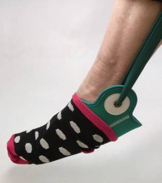 人工関節置換手術などにより、股関節・膝関節の可動域の低下が原因で、靴下を履くことが困難な方や高齢者向けの自助具です。