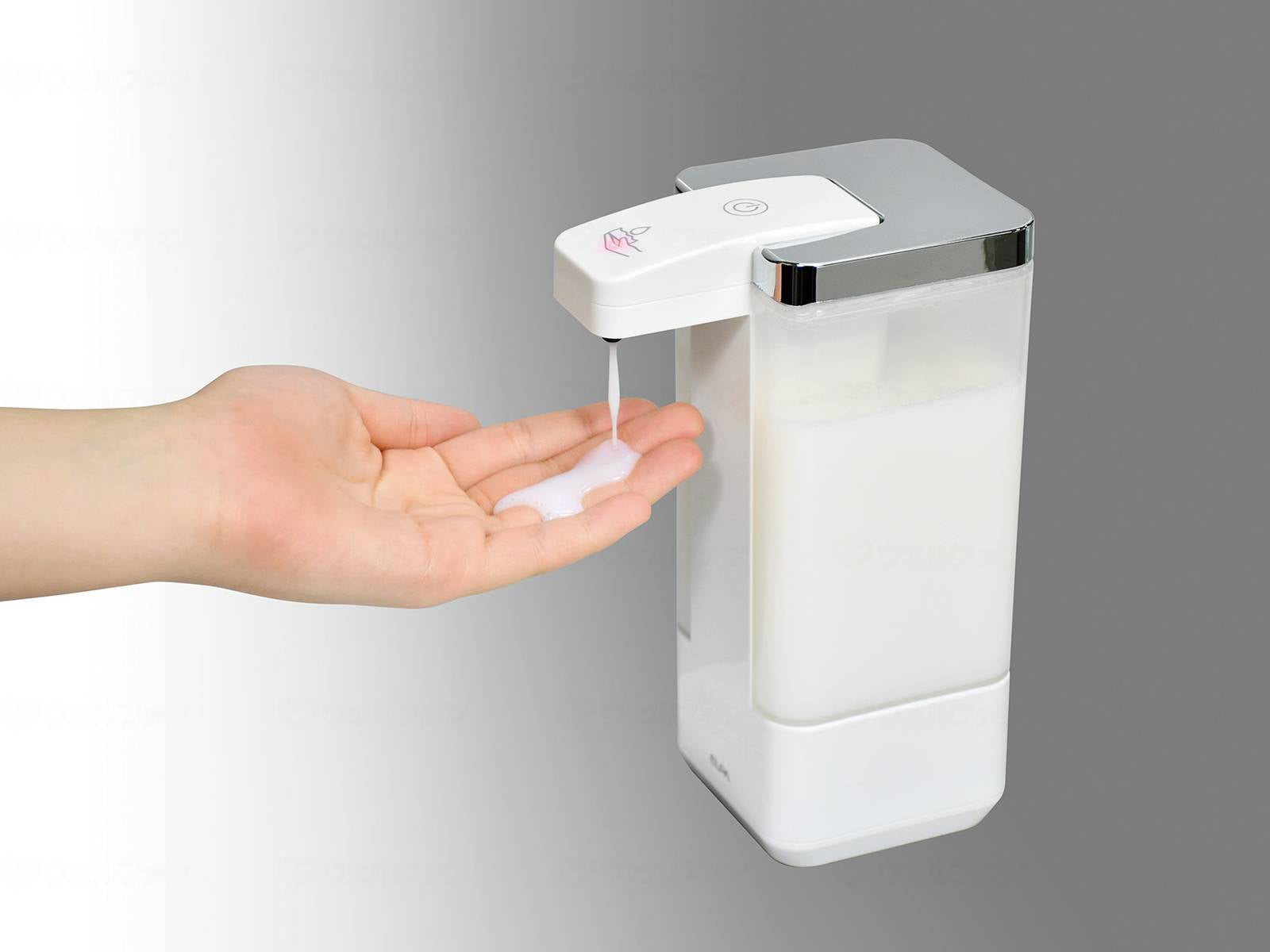 ○電源スイッチに軽く触れるだけで電源ON/OFFや吐出量の調整ができるタッチセンサー式。