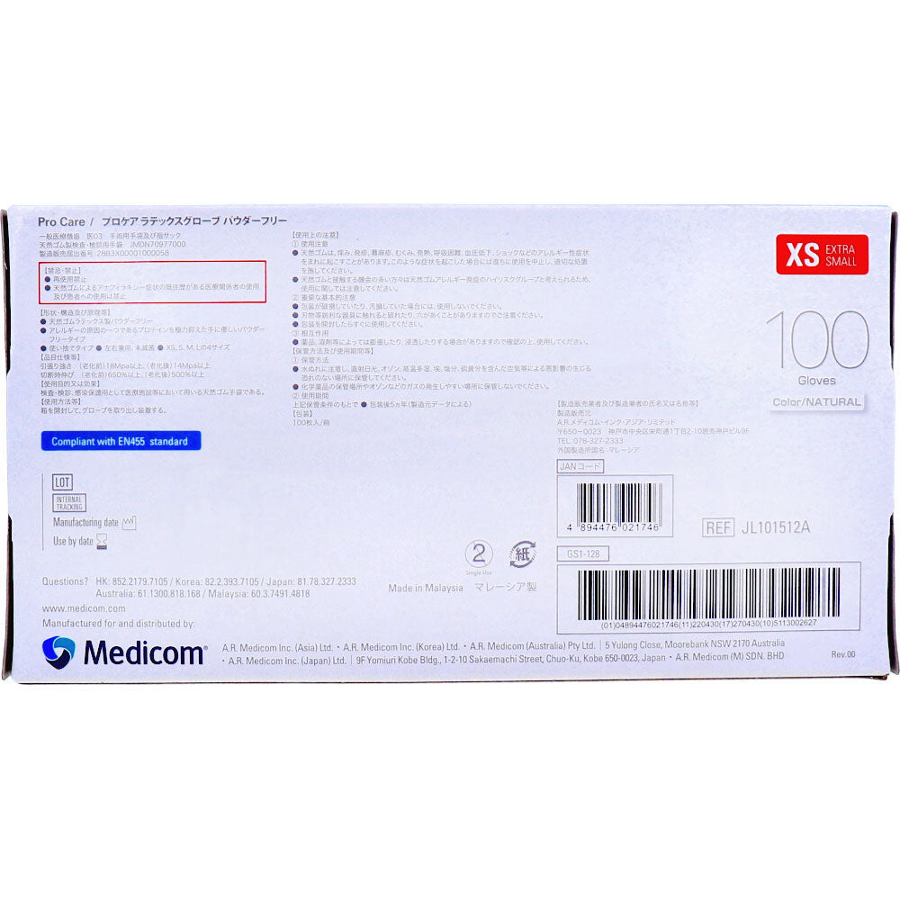 【業務用】プロケア ラテックスグローブ パウダーフリー XSサイズ 100枚入 1 個