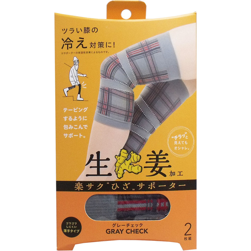 楽サク ひざサポーター 生姜加工 グレーチェック 2枚組 1 個