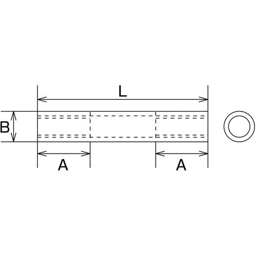 カタログ品番:B-2730 特長:●様々な寸法にカットされているので、用途に合わせて選んで頂けます。 用途:●筒の両端にネジ切りしているので、下穴に筒を挿入し、アイボルトの固定用などに。 仕様:●ねじ径:M4●A(mm):25●B(mm):6●L(mm):50 材質/仕上:●ステンレス(SUS304)●表面処理:バレル研磨仕上げ