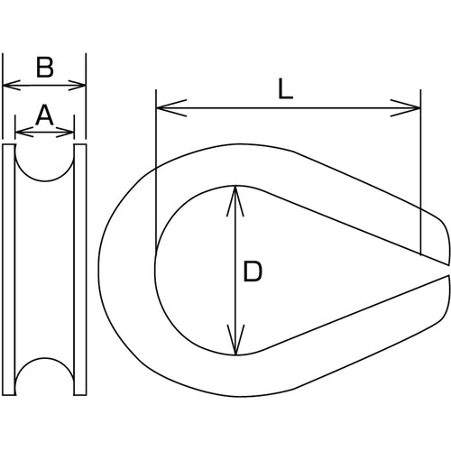 カタログ品番:B-425 特長:●端末加工するワイヤーコースとして使います。●ワイヤーロープの先端をアイ加工して使用する場合、ワイヤーの摩耗を防ぎます。 用途:●ワイヤーロープの先端をアイ加工して使用する場合のワイヤの摩耗防止 仕様:●適合ロープ径(mm):7●A(mm):7●B(mm):10●D(mm):15●L(mm):28●使用ロープ径(mm):7 材質/仕上:●ステンレス(SUS304)
