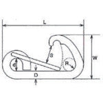 カタログ品番:L-12 特長:●荷重をかけた際、長辺に負荷がかかるため、フックに負担がかかりにくい構造になっています。 用途:●チェーン・ワイヤー・ロープ等の連結金具として、また端末の金具のジョイントに。 仕様:●使用荷重(kN):1.96●D(mm):12●L(mm):124●S(mm):26●W(mm):72●R(mm):10●d(mm):18 材質/仕上:●材質:ステンレス(SUS304)●仕上げ:バレル研磨仕上げ