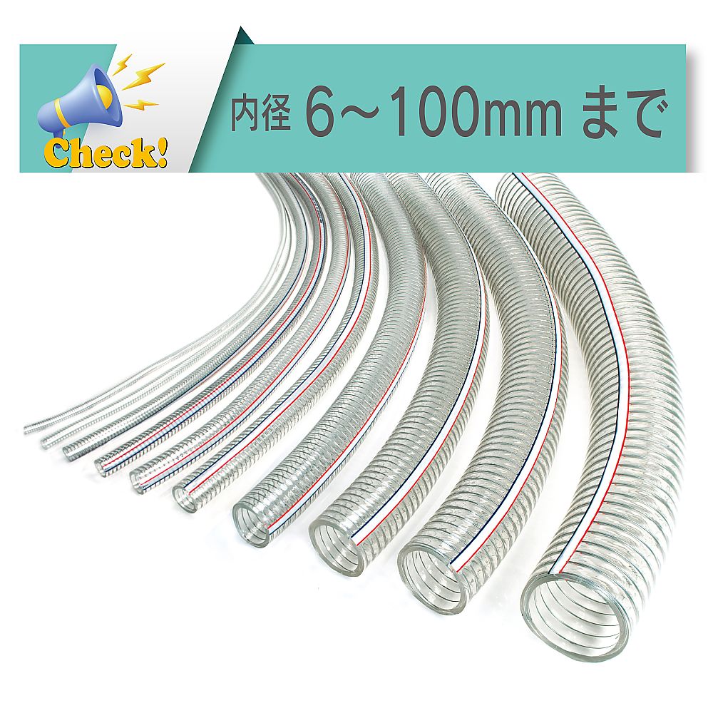 「豊富なサイズ」:サイズバリエーションが豊富な吸引・圧送用耐圧ホース(内径6~100mm)