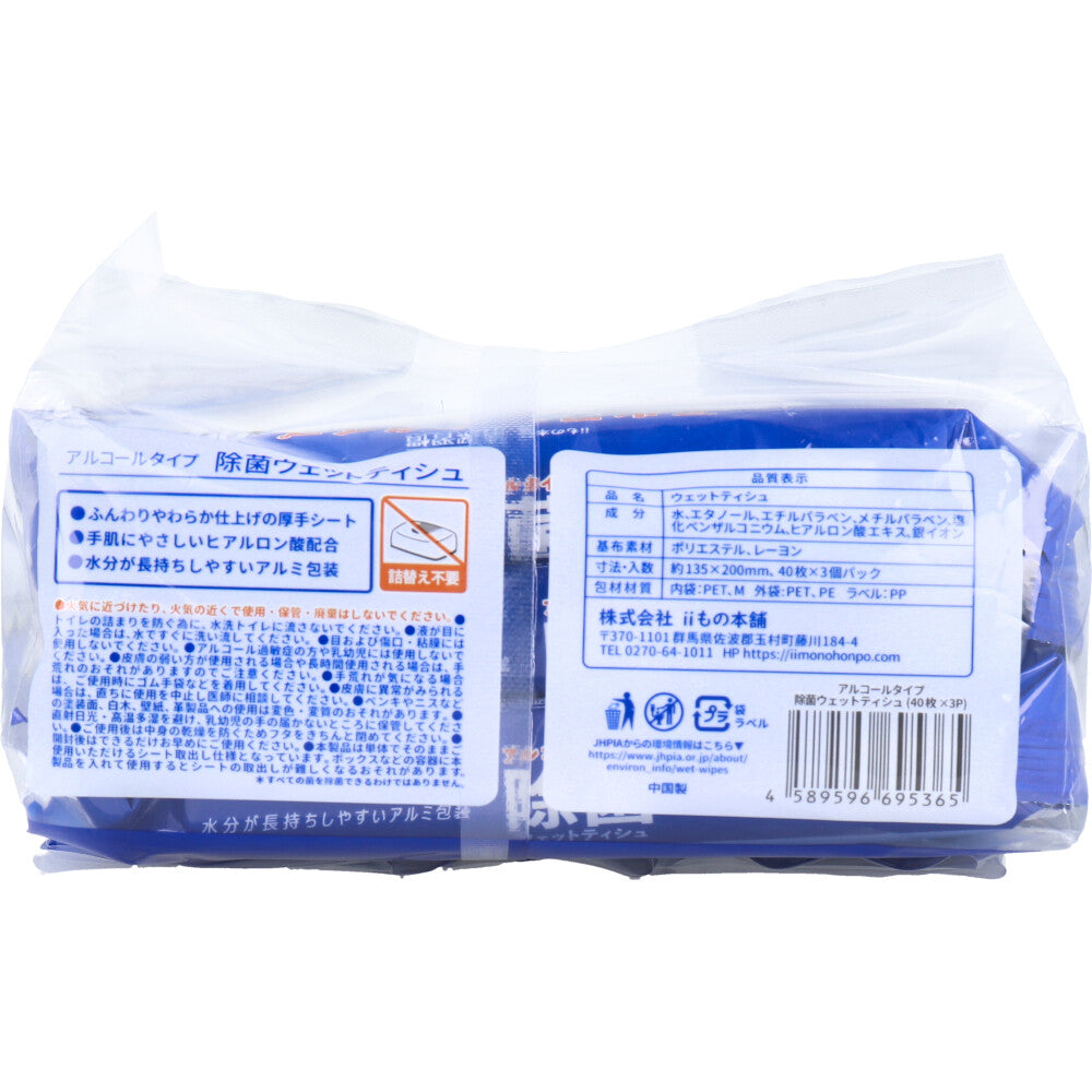 清潔習慣 除菌ウエットティシュ アルコールタイプ 40枚入×3個パック 1 個