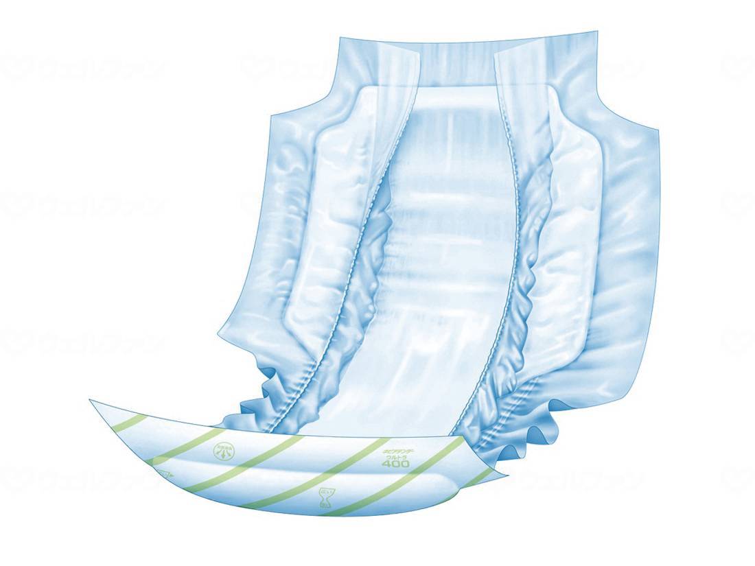 おしりとおなかに幅広くフィットして横モレを防ぎます。たくさんのおしっこも余裕で吸収 おしりはサラサラです。