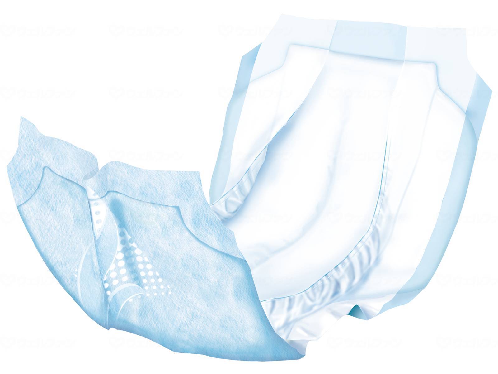 カンタン装着つまみによっておしりの部分にくぼみができます。便はその空間に入り込み、キープします。尿は吸収体内部で吸収されるため便と尿が混ざって流れる確率を低減します。