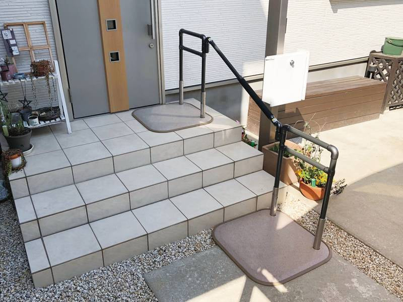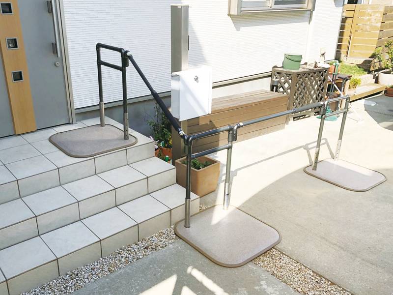 ○手すり:(φ32)プラスチック被覆ステンレスパイプ、(φ40)アルミパイプ
