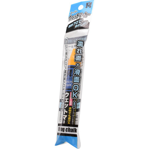 カタログ品番:S15547 特長:●耐熱70℃、耐冷-15℃で溶けにくく、はっきり書けるチョークです。●袋入れタイプ。 用途:●濡れ材(木材、鉄鋼材、雨天道路)アスファルト、ブロック材、コンクリート、ガラス、タイヤなど。 仕様:●色:黄●直径(mm):17●長さ(mm):117●筆記線幅(mm):17●芯径(mm):17●タイプ:油性●奥行き(mm):17●油性マーキングチョークです。●どこにでもよく書ける。濡れた滑面にも書け、書いた文字は水では流れません。●消すときは乾いた布やティッシュで拭けば簡単に消せます。● 消した後で塗装する場合は灯油やベンジンできれいに拭きとってください。 材質/仕上:●ワックス/顔料