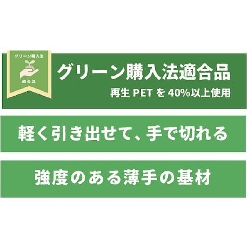 カタログ品番:N701X03 特長:●縦糸に再生PETを40%以上使用した環境配慮型のクロステープです。●柔軟な基材のテープで手切れ性にも優れています。●グリーン購入法適合商品です。●油性マジックで文字が書けます。 用途:●中・重梱包用に。 仕様:●色:茶●幅(mm):50●長さ(m):50●厚さ(mm):0.12●テープカット条件:手で切断可能●粘着力(N/10mm):2.7●粘着力(N/25mm):6.75●引張強度(N/10mm):35●粘着力:2.7N/10mm●引張強度:35N/10mm●手で切断可能 材質/仕上:●基材:再生PET×ポリエチレン●粘着剤:ゴム系