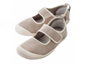 〇底面には安全な歩行をサポートする素材を使用。アウトソールの内側には脱ぎやすさをサポートするキック付き。