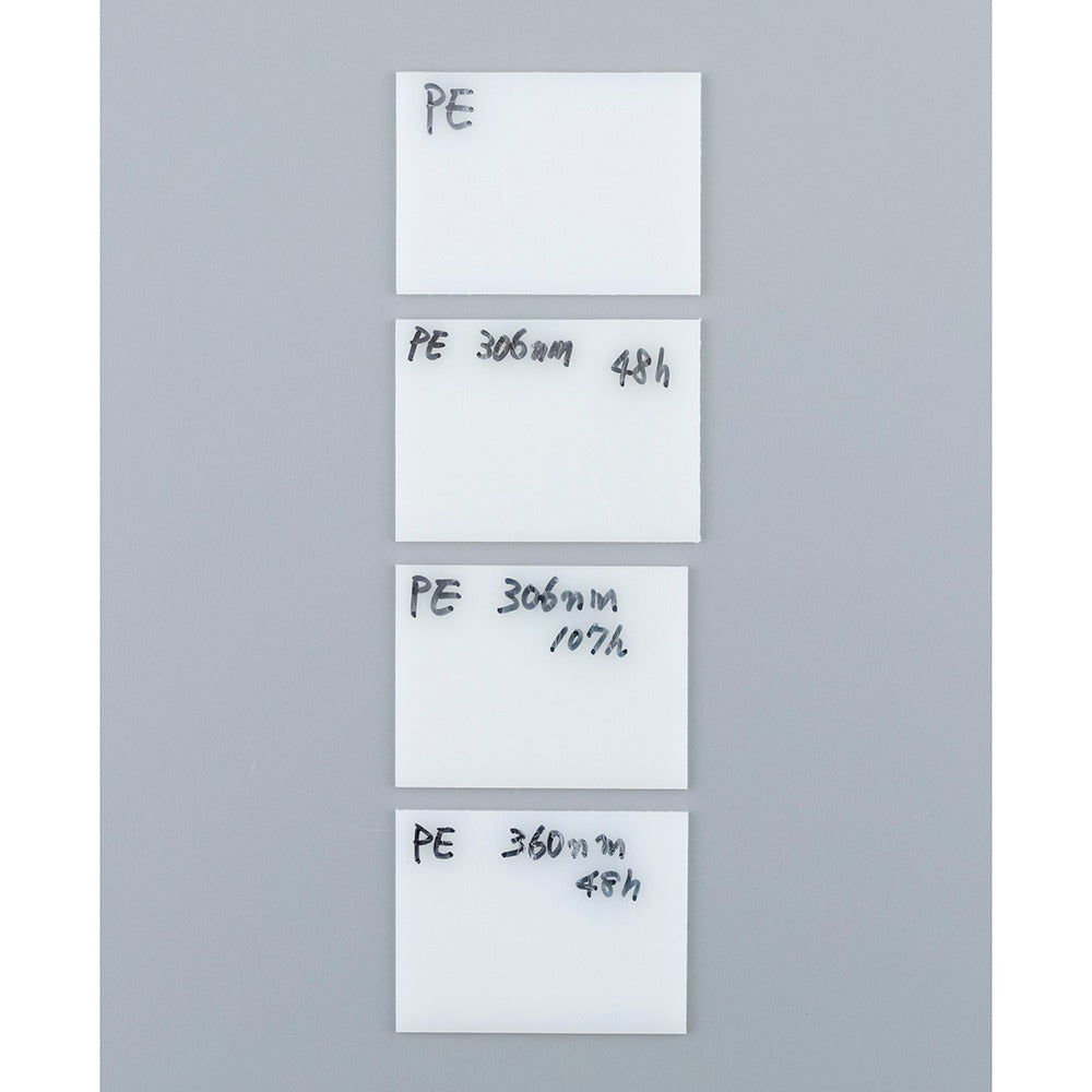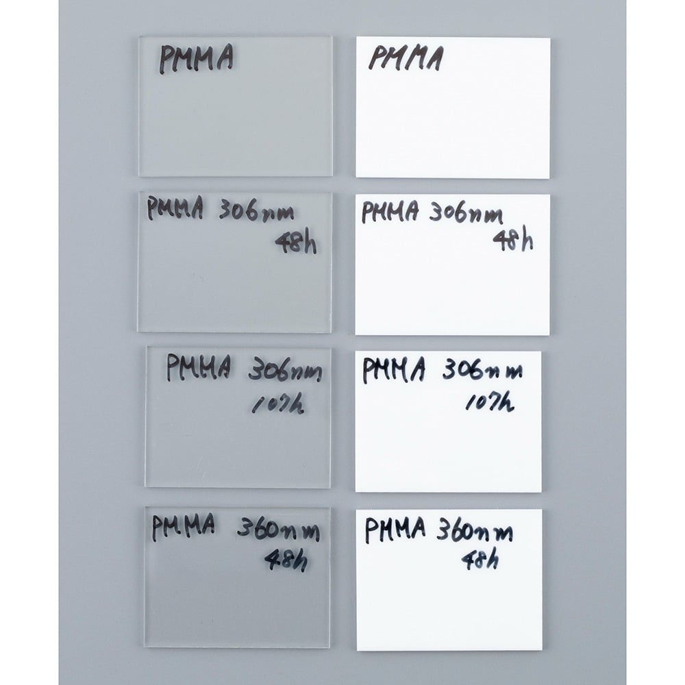 紫外線を用いて簡易的に耐候性を評価することができます。