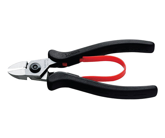 切れ味が高く、ピアノ線・ステンレス線の切断に適しています。 プラスチックバネを使用しており、連続作業に適しています。型番:SN-130 全長(mm):130 重量(g):90 材質:本体/SK85(SK-5)、グリップ/エラストマー樹脂 刃部硬度:HRC62~67 切断能力:ピアノ線/Φ0.5mm、ステンレス線/Φ0.5mm、鉄線/Φ2.0mm、銅線/Φ3.2mm、より線/2.0mm2 刃角度:13°