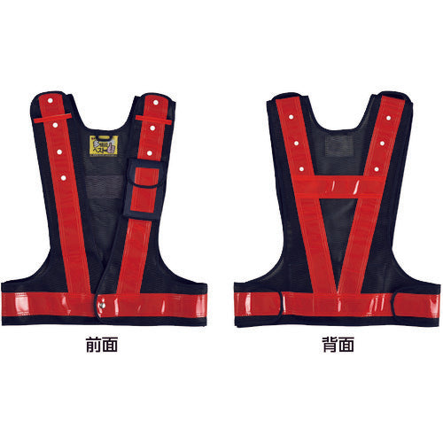 カタログ品番:238102 特長:●体型や季節(夏服〜防寒具など)に合わせたサイズ調整が可能です。●左胸前部(1ヵ所)と腰内部(3ヵ所)に便利な収納ポケット付です。 用途:●交通整理や現場作業に。 仕様:●色:紺/赤反射●着丈(cm):51〜59●胴周り(cm):94〜132●サイズ:フリー●幅(cm):52〜65●反射材幅:60●万能ポケット×4箇所(左胸外部×1箇所・腰内部×3箇所) 材質/仕上:●メッシュ生地:ポリアミド合成樹脂●反射帯:軟質塩化ビニール