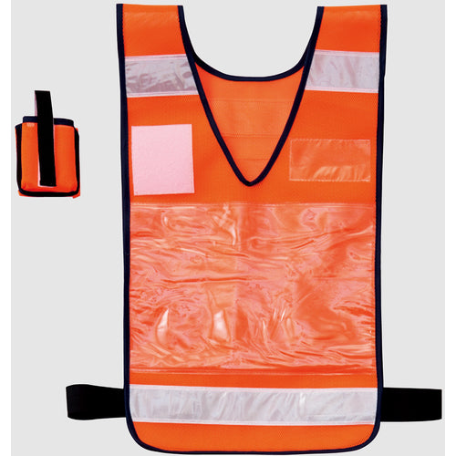カタログ品番:237220 特長:●前面背面の透明ポケットにA4用紙をそのまま差し込めます。●右胸部のポケットには携帯電話などの小物が収納でき、ポケット自体を取り外すことも可能です。●左胸部には名刺を入れられる透明ポケットが付いています。 用途:●職務や役職などの識別に。 仕様:●色:オレンジ/白反射●着丈(cm):60●サイズ:フリー●肩幅(cm):36●差し込み部(mm):215×320●反射材幅(mm):50●台紙差し込み用ポケット×2箇所(前面×1箇所・背面×1箇所)●ポケット部:面ファスナーによる着脱式 材質/仕上:●メッシュ部:ナイロンメッシュ●反射帯:エンビ 注意:●台紙は付いていません。