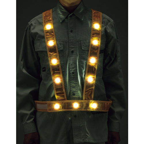 緑十字 LED安全反射ベスト 黄地/白LED/金反射 LEDタスキ型ベスト−GW フリーサイズ(サイズ調整可能) 238025 1 着