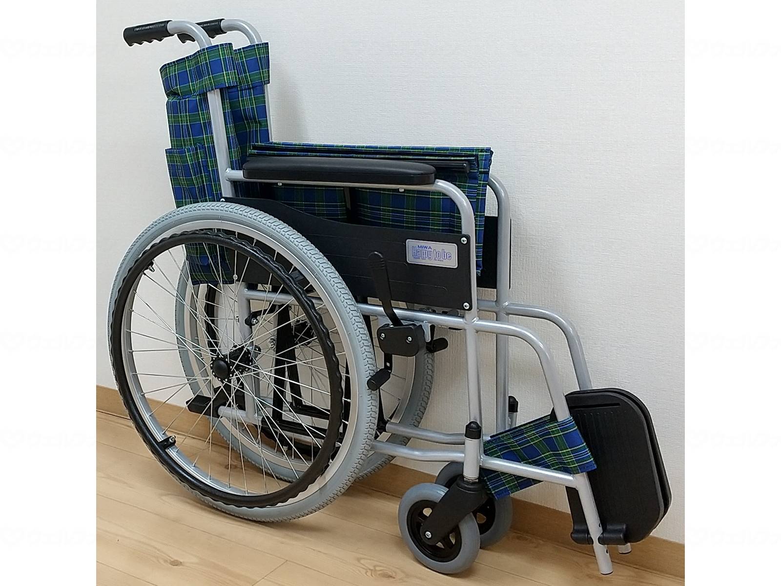 美和商事自走式標準形車いす スタンダード(スチール)ノーパンク チェックグリーン