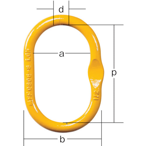 カタログ品番:MFF-10 特長:●1本吊りから4本吊りまで使用できます。 用途:●マスターリンクとして。 仕様:●基本使用荷重(t):3.2●適合チェーン線径(mm)1本吊:10●適合チェーン線径(mm)2本吊:7.1●寸法(mm)d:17●寸法(mm)p:141●破断荷重(kN):160●寸法(mm) a:80●寸法(mm) b:114●サブリング:なし 材質/仕上:●スチール