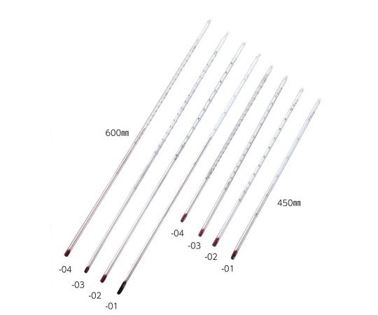 全長および目盛下(脚部)が長く、各種タンクや機械装置の差込内部温度測定に適しています。測定範囲(℃):0~200