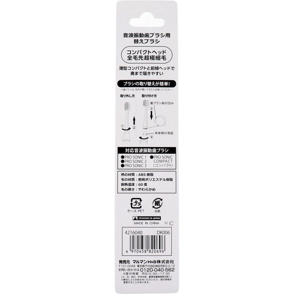 音波振動歯ブラシ プロソニックコンパクトやわらかめ 替えブラシ DK006 超極細毛 2本入 1 個
