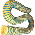 カタログ品番:TS-15050 特長:●吸気用で硬鋼線のピッチがせまくなっています。●硬鋼線が入っているため、伸縮、屈曲が可能なので、せまい場所での使用が容易です。●圧縮性に優れています。 仕様:●ダクト径(mm):155●長さ(m):5●適合送風機最大口径(mm):150●硬鋼線(mm):2.6●本体生地厚さ(mm):0.35●耐熱温度(℃):60〜70℃●(財)日本防炎協会認定品 オレンジ色(防炎認定品) 材質/仕上:●基布:ポリエステルターポリン●表面加工:塩ビシートをラミネート加工●吊り金具:SUS430