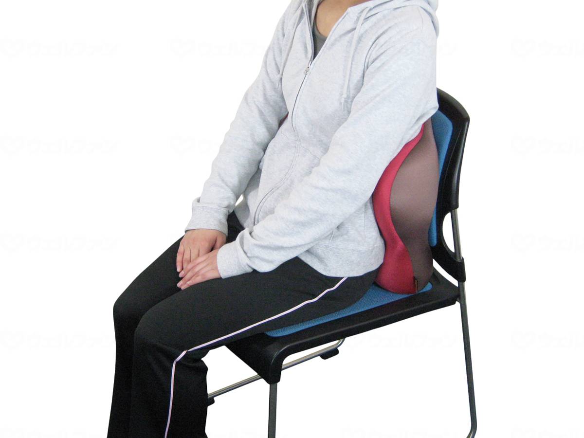 座った状態で、上下のコブを左右にキュッキュッ!と引っ張ると、ビーズが移動し身体にフィット。