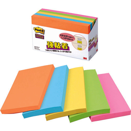 カタログ品番:655-5SSAN 特長:●強粘着タイプのポストイット[[R上]] 製品です。●粘着力が通常の約2倍(当社通常粘着製品比)で、目にとまりやすいネオンカラーです。●樹脂製品などはがれやすかった場所にもしっかり貼れます。 用途:●ホワイトボードやダンボール、工事現場に。 仕様:●色:オレンジ・エレクトリックブルー・ビビットイエロー・ライム・ローズ●縦(mm):75●横(mm):127●パック入数:90枚×5冊 材質/仕上:●本体:紙●粘着剤:アクリル系 注意:●強粘着タイプですので、紙の種類によっては剥がすときに表面を破損する恐れがあります。●この商品は、一般消費者様向けの製品ではない為、表示や取扱説明書等が一般消費者様向けに表記・同梱されておりません。