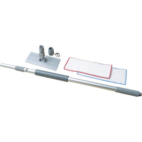 カタログ品番:MUL START 特長:●伸縮性のハンドルなので高い所にもクロスが届きます。●平らな特殊構造のマイクロファイバーが、油汚れをしっかりかき取ります。●くり返し洗って使用できます。 用途:●鏡やガラス、厨房レンジフードなどの手垢や油汚れなどの清掃。 仕様:●幅(mm):220●長さ(mm):830〜1430●イージーマルチクリーニングホルダー幅×長さ(mm):95×220●イージーマルチクリーニングハンドル直径×長さ(mm):30×830〜1430●クリーニングクロス多用途幅×長さ(mm):120×280 材質/仕上:●ハンドルおよびホルダ:アルミニウム合金●クロス:ポリエステル、ナイロン セット内容/付属品:●イージーマルチクリーニングホルダー:1台、イージーマルチクリーニングハンドル:1本、クリーニングクロス多用途:フチ色青・赤各1枚