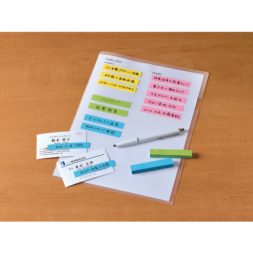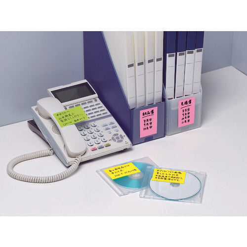 カタログ品番:560SS-NE 特長:●古紙100%の再生紙を使用し、環境保全を考え、資源をムダなく利用しています。 仕様:●色:ビビットイエロー・ライム・ローズ・エレクトリックブルー●縦(mm):75●横(mm):14●パック入数:90枚×4冊 材質/仕上:●本体:古紙パルプ配合率100%の再生紙●粘着剤:アクリル系粘着剤 注意:●強粘着タイプですので、紙の種類によっては、はがすときに表面を破損する恐れがあります。●製品によって、形状が少しカールしている場合がございますが品質には何ら影響はありません。