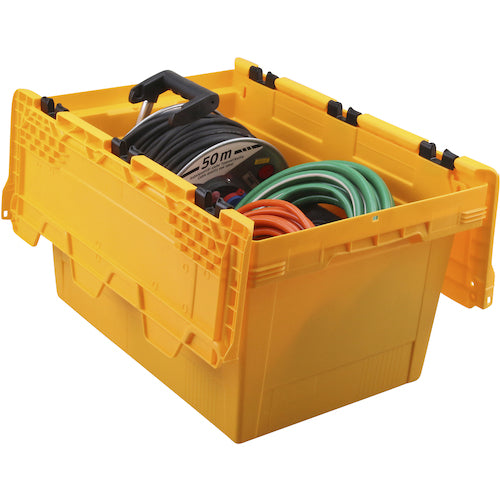 カタログ品番:456653 特長:●ドイツで製造された高品質な本体フタ一体型のコンテナです。●非常に頑丈で壊れにくく、配送の通い箱などに最適です。●コンテナ本体をフロアや棚などに置き、動かさず使用する場合の最大積載荷重は200kg(フタの耐荷重は35kg)です。●スタッキングおよびネスティングが可能です。 仕様:●容量(L):47●色:イエロー●外形寸法(mm)間口:600●外形寸法(mm)奥行:400●外形寸法(mm)高さ:299●有効内寸(mm)間口:495●有効内寸(mm)奥行:325●有効内寸(mm)高さ:270 材質/仕上:●ポリプロピレン
