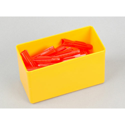 カタログ品番:456306 特長:●耐衝撃性向上ポリスチレンを使用しており衝撃に強いです。●キャビネットの引き出しの整理や小物の整理・収納に最適です。●自由自在にボックスを組み合わせできます。 用途:●小物の整理・収納に。 仕様:●色:黄●外形寸法(mm)間口:54●外形寸法(mm)奥行:108●外形寸法(mm)高さ:63●有効内寸(mm)間口:48●有効内寸(mm)奥行:101●有効内寸(mm)高さ:60●南京錠(別売):取付不可●仕切板(枚):0●適合機種:EuroPlus Pro M(454120〜454123)、EuroPlus Pro K(45420〜454270)、McPlus Carry 40(457279) 材質/仕上:●耐衝撃性向上ポリスチレン