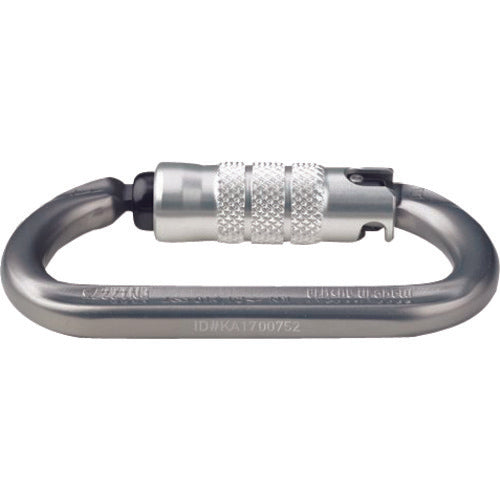 カタログ品番:KA35B3-G-ID 特長:●登山で使用される非常に頑丈なカラビナです。●オーバルシェイプです。 用途:●土建作業などに。 仕様:●色:シルバー●幅(mm):56●長さ(mm):105●ロック:3点オートロック●高さ(mm):105●破断強度(kN):24●EN12275+EN362規格適合品 材質/仕上:●7075 アルミニウム 注意:●落下防止器具ではありません。●必ず記載の破断強度以内でご使用ください。●製品にひびなどがないか確認してからご使用ください。