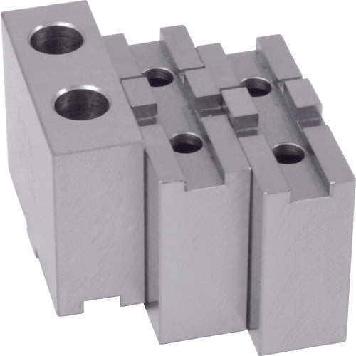 カタログ品番:STA-110H45 特長:●1set3個を同時加工の高精度品です。●寸法指定の特殊生爪も製作可能です。 用途:●旋盤チャック用。●標準高さ・高爪があります。 仕様:●チャック外径(インチ):4●長さ(mm):53●幅(mm):19●高さ(mm):45●チャックサイズ(インチ):4●適合メーカー:ビクター/小林鉄工●適合チャック:TC110F 材質/仕上:●S50C 注意:●出荷単位は1セット(3個)です。