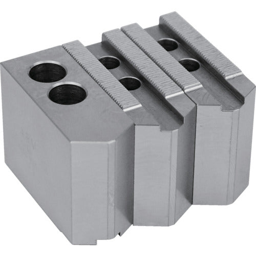 カタログ品番:HO-6SH60 特長:●1set3個を同時加工の高精度品です。●メーカー純正品にない小径把握用です。●寸法指定の特殊生爪も製作可能です。 用途:●旋盤チャック用。●標準/高爪(HO-6)・小径生爪(HO-6S)・山取無(HO-6K)・幅広生爪(HO-6W)があります。●加工ワークに合わせて、生爪を選択ください。 仕様:●チャック外径(インチ):6●ピッチ(mm):1.5●長さ(mm):80●幅(mm):32●高さ(mm):60●チャックサイズ(インチ):6●適合メーカー:北川鉄工所●適合チャック:BR06 / AS06 / B-06 / BB06 / HOB-6 / HOS-6 / BT06 / NLT06 / NT06 材質/仕上:●S50C 注意:●出荷単位は1セット(3個)です。