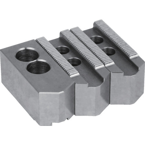 カタログ品番:HJ-4H25 特長:●1set3個を同時加工の高精度品です。●寸法指定の特殊生爪も製作可能です。 用途:●旋盤チャック用。●標準高さ・高爪があります。 仕様:●チャック外径(インチ):4●ピッチ(mm):1.5●長さ(mm):55●幅(mm):23●高さ(mm):25●チャックサイズ(インチ):4●適合メーカー:北川鉄工所●適合チャック:AT04 / NT04 / AS04 / HJ-4 / N-04 / NL04 / NRC04 材質/仕上:●S50C 注意:●出荷単位は1セット(3個)です。