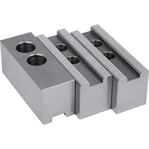カタログ品番:HJ-8H42 特長:●1set3個を同時加工の高精度品です。●寸法指定の特殊生爪も製作可能です。 用途:●旋盤チャック用。●標準高さ・高爪があります。 仕様:●チャック外径(インチ):8●ピッチ(mm):3●長さ(mm):95●幅(mm):35●高さ(mm):42●チャックサイズ(インチ):8●適合メーカー:北川鉄工所●適合チャック:HJ-8 材質/仕上:●S50C 注意:●出荷単位は1セット(3個)です。