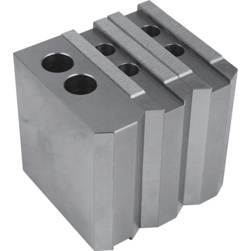 カタログ品番:HO-8H100 特長:●1set3個を同時加工の高精度品です。●寸法指定の特殊生爪も製作可能です。 用途:●旋盤チャック用。●標準/高爪(HO-8)・小径生爪(HO-8S)・山取無(HO-8K)・幅広生爪(HO-8W)があります。●加工ワークに合わせて、生爪を選択ください。 仕様:●チャック外径(インチ):8●ピッチ(mm):1.5●長さ(mm):95●幅(mm):35●高さ(mm):100●チャックサイズ(インチ):8●適合メーカー:北川鉄工所●適合チャック:BR08 / B-208 / AS08 / BB208 / BL208 / BLT208 / BT208 / NLT08 / NT08 材質/仕上:●S50C 注意:●出荷単位は1セット(3個)です。