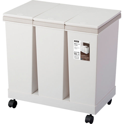 カタログ品番:671104 特長:●キャスター付きで楽に移動できます。●本品1つで3種の分別が可能です。 仕様:●色:ホワイト●間口(mm):533●奥行(mm):340●高さ(mm):530●容量(L):20×3 材質/仕上:●本体:ポリプロピレン