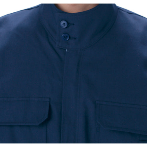 カタログ品番:5101-001-M 特長:●優れた防炎機能を持つ素材を採用したつなぎ服です。●帯電防止織物を使用しています。●コットンの優しい着用感で快適性にも優れています。 用途:●火を使う現場に。●作業全般、他。 仕様:●色:ネイビーブルー●サイズ:M●身長(cm):162〜167●胸囲(cm):114●ウエスト(cm):90●肩幅(cm):46●股下(cm):74●袖丈(cm):56●適合身長(cm):162〜167●前開き部分ファスナー式●ブレバノ素材使用 材質/仕上:●綿55%、アクリル系45% 注意:●不燃ではありません。●油脂系洗剤は一般にすすぎ落ちが悪く、残留した洗剤の影響で防炎効果が低下する恐れがありますので使用しないでください。●着用時に金属粉や油脂が付着すると防炎性を阻害する危険性があります。