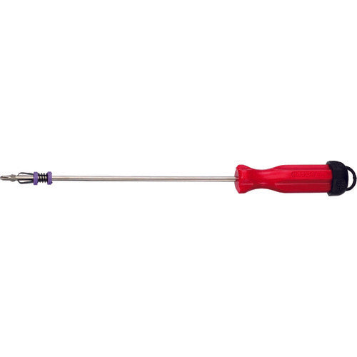 カタログ品番:DX-12 特長:●ステンレスねじなど磁石の効かない奥深い所のビスを落とさず作業ができます。(PAT.) 仕様:●刃先:[[+]]No.2●軸長(mm):200●全長(mm):295 材質/仕上:●軸:特殊鋼●グリップ:ポリプロピレン