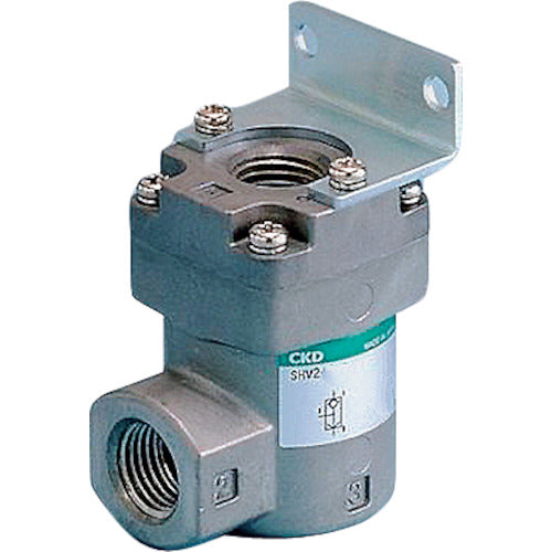 カタログ品番:SHV2-8 特長:●接続口径がバリエーション豊富(Rc1/8〜Rc5までをシリーズ化)です。●フッ素ゴム仕様(標準はニトリルゴム)をオプション化しました。●SHV2-6、SHV2-8のみ取付ブラケットをオプション化しました。●環境に優しい商品です。鉛フリー、六価クロムレス、塗装レスですので、分別処理が容易になります。 用途:●エア回路でOR回路を組む際に 仕様:●有効断面積([[MM2]]):ポート位置1→2:28、ポート位置3→2:32●接続口径:Rc1/4●使用圧力(MPa):0.05〜1.0●使用流体:圧縮空気●最小必要流量(L/min):30●幅(mm):32●奥行(mm):43●高さ(mm):46●流体温度(℃):5〜60●使用流体:圧縮空気●最低作動圧力:0.05MPa●最低作動差圧:0.05MPa●最高使用圧力:1.0MPa●耐圧力:1.5MPa●流体温度:5〜60℃●周囲温度:0〜60℃(ただし、凍結なきこと)●取付姿勢:自在●最小必要流量値以下の流量の場合には、弁が完全には切り換わらないことがあります。 材質/仕上:●ボディ:アルミダイカスト●Oリング:ニトリルゴム