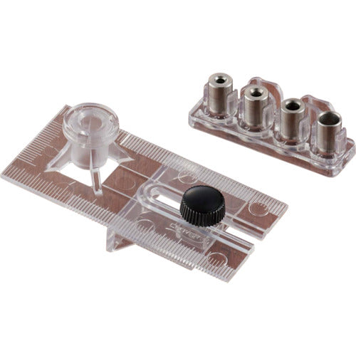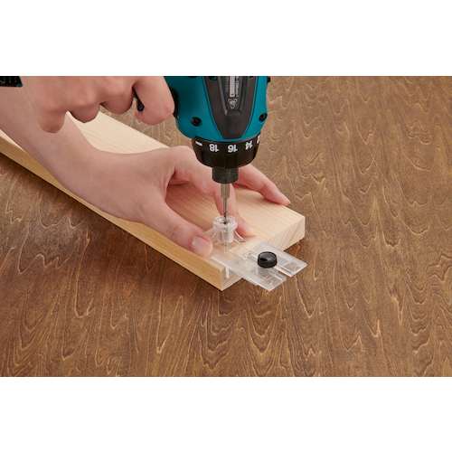 カタログ品番:71-142 特長:●木材にまっすぐに穴をあけられます。●側面から穴位置を確認できるので、穴位置を合わせやすいです。●側面ストッパーを使うと、木材端からの穴位置を揃えやすいです。●2.5、3mm径の細いドリルビットにも対応しています。●木材に垂直に穴をあけることで、ビス打ち、ネジ締めの失敗を防ぎます。 用途:●木材への垂直な穴あけに。 仕様:●適合ドリル:2.5・3・4・6mm用●セット内容:ドリルガイド(フタ・側面ストッパー付き)、ガイド各1個(2.5・3・4・6mm用)、ガイドホルダー 材質/仕上:●ドリルガイド:ABS樹脂●ネジ:ナイロン、鋼●ガイド:ステンレス●ガイドホルダー:ABS樹脂
