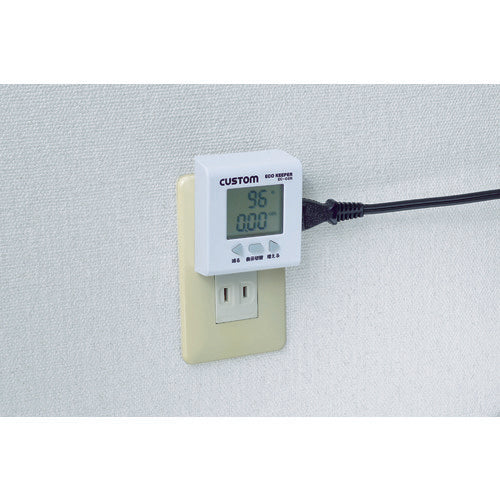 カタログ品番:EC-03N 特長:●壁のコンセントと電気製品の間に接続するだけで、電気製品の電力測定ができます。●電気製品(AC100V電源)の使用状況(6項目)を確認できます。●計測項目は、使用時間・積算電気料金・1時間あたりの電気料金・瞬時電力量・積算電力量・[[CO2]]排出量です。●電気料金単価を可変できます。 用途:●電気製品の電力測定。●OAタップの電力測定。 仕様:●測定電力範囲(kW):0.005〜1.5●幅(mm):62●奥行(mm):28●高さ(mm):70●定格電圧(V):AC100V、50/60Hz●容量:15A以下(1500W以下)●入力電圧(V):AC100(50/60Hz)●測定精度:±(2%rdg+2dgt)●幅×奥行×高さ:70×28×62mm●消費電力(W):約0.5W以下●縦×横×厚さ:70×62×28mm●定格電圧:AC100V、50/60Hz●容量:15A以下(1500W以下)●測定範囲(W):5〜1500●電気換算レート:1Kwh=22円 材質/仕上:●ABS樹脂 注意:●オイルヒーター、IHヒーター、エアコン、クーラーなどにはご使用できません。