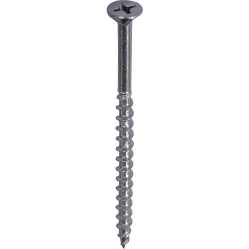 カタログ品番:00045896 特長:●錆びに強いステンレス製コーススレッドです。●野外・水廻りでのご使用に適しています。 用途:●木工用。 仕様:●寸法(mm)d:3.8●全長(mm):32●ねじ部長さ(mm):26●タイプ:全ねじ●頭部径dk(mm):7.1●適合ドライバー:2●頭部色:素地●表面処理:素地●寸法(mm)d×全長:3.8×32●パック入数(本):1000●フレキ頭 材質/仕上:●ステンレス(SUS410)・パシペート