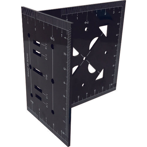カタログ品番:10179057 特長:●縦と横に目印をいれるとき、45度の角度のラインをいれるとき、中心にラインをいれるときに便利です。 用途:●2×4材と1×4材をつかう造作物の隅だしに。 仕様:●色:ブラック●板厚(mm):2●W(mm):89●L1(mm):91●幅(mm):89●長さ(mm):91●タイプ:定規●L(mm):91●D(mm):59 材質/仕上:●ポリカーボネイト樹脂 注意:●注意:木材は水分や加工によりサイズのバラつきがある為、計測の際は考慮の上でご使用ください。