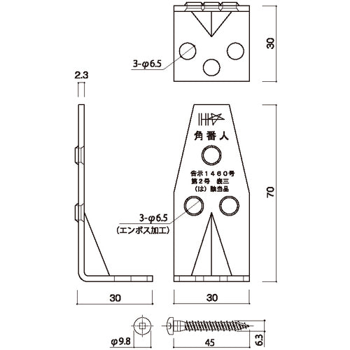 カタログ品番:10177178 特長:●高耐食溶融亜鉛めっき鋼板(ZAM)を使用しています。 用途:●柱と横架材の接合に。 仕様:●タイプ:標準●告示1460号 は●短期基準耐力(kN):5.3●N値 1.0以下 材質/仕上:●ZAM●表面処理:高耐食溶融めっき鋼板 セット内容/付属品:●専用ビス DB−45 6本/組 注意:●必ず付属の専用ビスで施工して下さい。