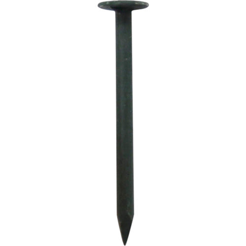 カタログ品番:00046823 特長:●釘の頭部が大きいため、合板やベニヤを打つのに最適です。 用途:●トタン板と木材を留める場合に。 仕様:●寸法(mm)d:1.8●全長(mm):25●番手(#):15●頭部径(mm):5●胴部形状:スムース●色:ライトグリーン●表面処理:着色●箱入数(本):約850●箱入 材質/仕上:●スチール●表面処理:着色