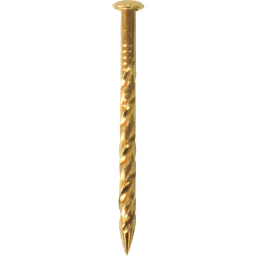 カタログ品番:00046853 特長:●一般的に装飾用に使用し、錆にも強く、加工後の仕上げが美しいです。 用途:●装飾用。 仕様:●寸法(mm)d:1.7●全長(mm):25●呼び:1.7●番手(#):16●頭部径(mm):3.5●胴部形状:スクリュー●色:ゴールド●表面処理:素地●寸法(mm)d×全長:1.7×25●入り数(本):約900●頭形状:丸頭●スクリュー釘 材質/仕上:●真鍮