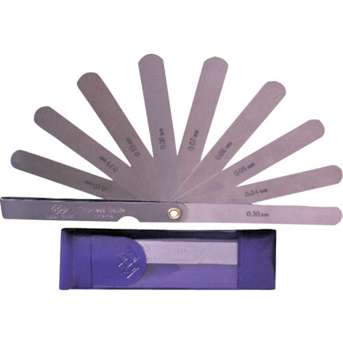 カタログ品番:172MB 特長:●自動車や電動機、発動機関のピストンおよびシリンダのすき間測定に使用します。 用途:●すき間の測定および調整に。 仕様:●メーカーコード:172MB●リーフ形状:A●長さ(mm):100●枚数(枚):9●セット明細(mm):0.04、0.05、0.06、0.07、0.08、0.10、0.15、0.20、0.30(ハトメ止)●リーフ幅:12.7mm 材質/仕上:●炭素工具鋼(焼き入れ品) 注意:●キズ・折れ曲がり・サビが非常に発生しやすくなっております。取り扱いには十分お気をつけ下さい。
