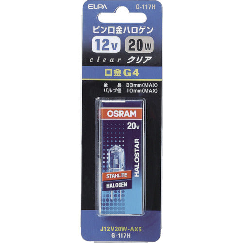 ELPA 電球(ハロゲン球) ピン口金ハロゲンJ G4 電圧12V 消費電力20W クリア J12V20W−AXS G-117H-20W 1 個